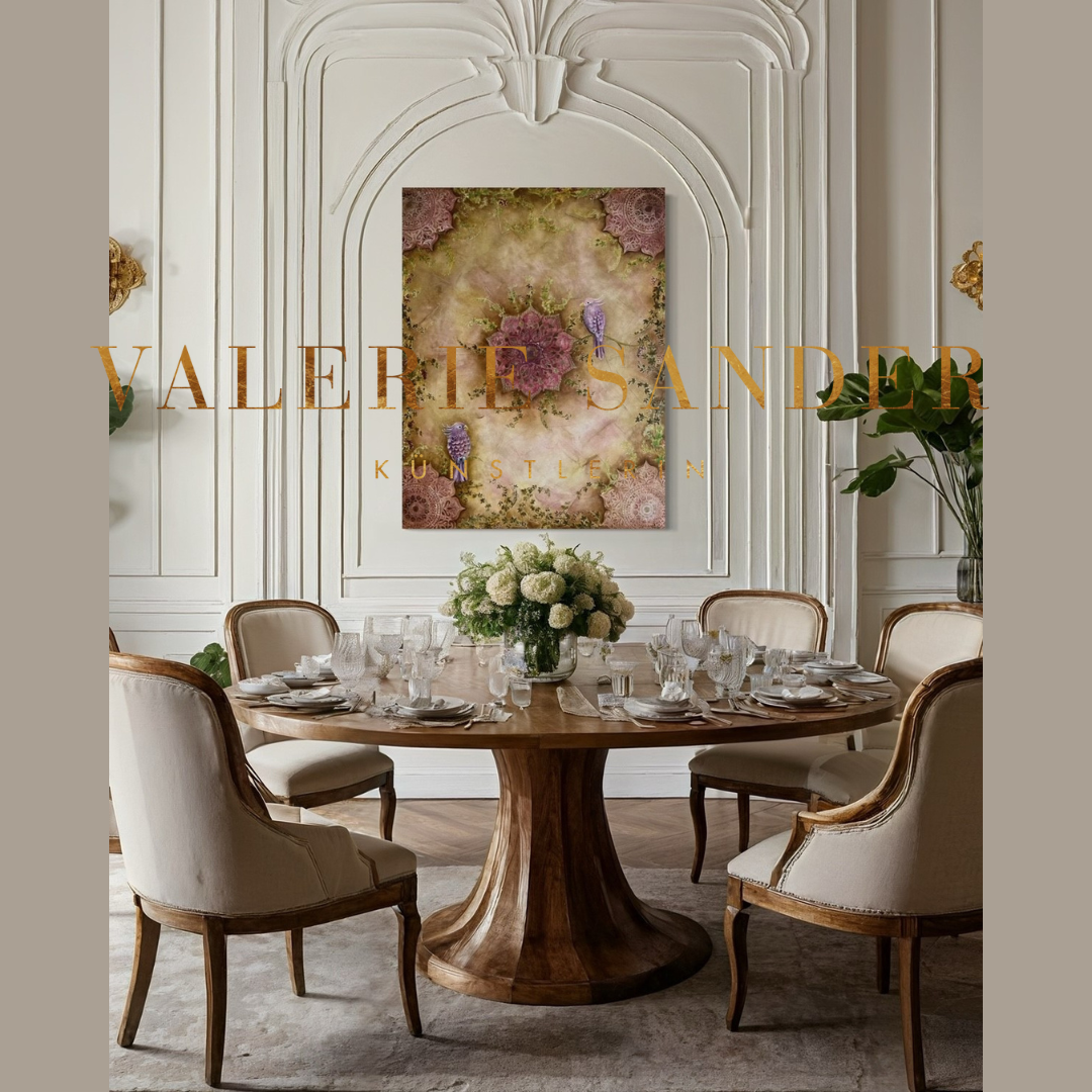 Die Serie IMPERIAL FRESCO besticht durch die Verarbeitung edler Materialien wie italienischer Marmormehle und Pigmente, sowie Einlagen aus 24 K Blattgold. Alle Werke dieser Serie wurden in der italienischen Frescotechnik gearbeitet und mit feinster Ölmalerei vollendet.